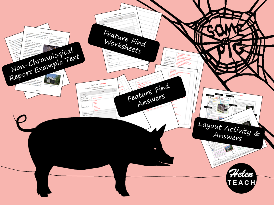 The model text is about barn spiders, the same species of spider as the character Charlotte. However, pupils could choose which animal from the novel to research and write about, such as spiders, pigs, rats, geese or sheep.